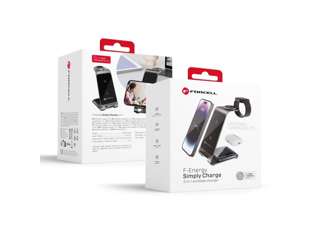 Forcell Bezdrátová nabíječka Simply Charge 3v1 15W černá