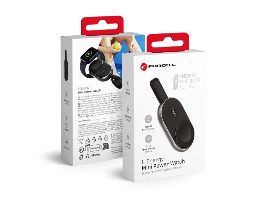 Už žádné starosti s vybitými hodinkami během dne. Forcell F-Energy Mini Power Watch je ultrakompaktní a lehká powerbanka určená výhradně pro uživatele Apple Watch, kteří chtějí mít po ruce praktické řešení pro doplnění energie kdykoliv a kdekoliv. Díky kapacitě 1200 mAh zvládne hodinky nabít až 3× na jedno nabití – a to vše bez nutnosti tahat objemné příslušenství.