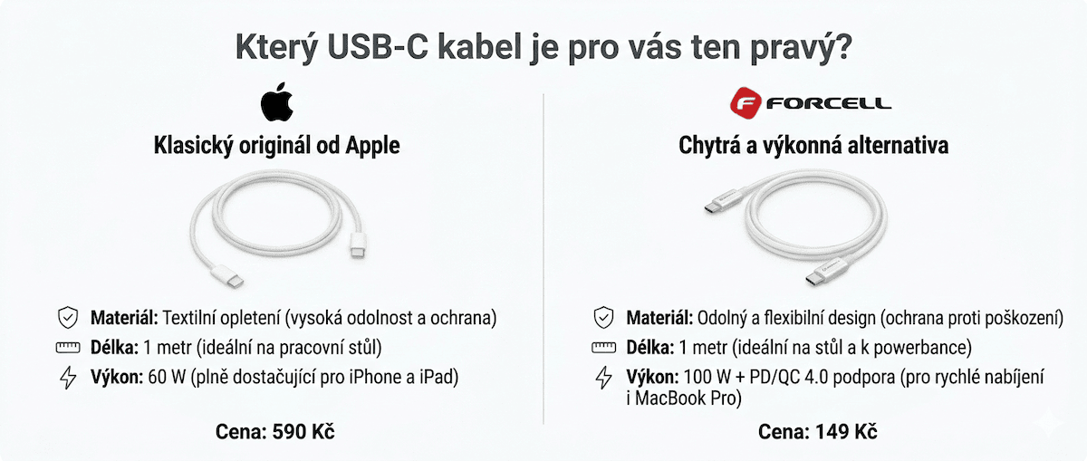 💬 Potřebujete delší kabel nebo variantu s jiným konektorem? Prohlédněte si i další Forcell datové kabely v naší nabídce.